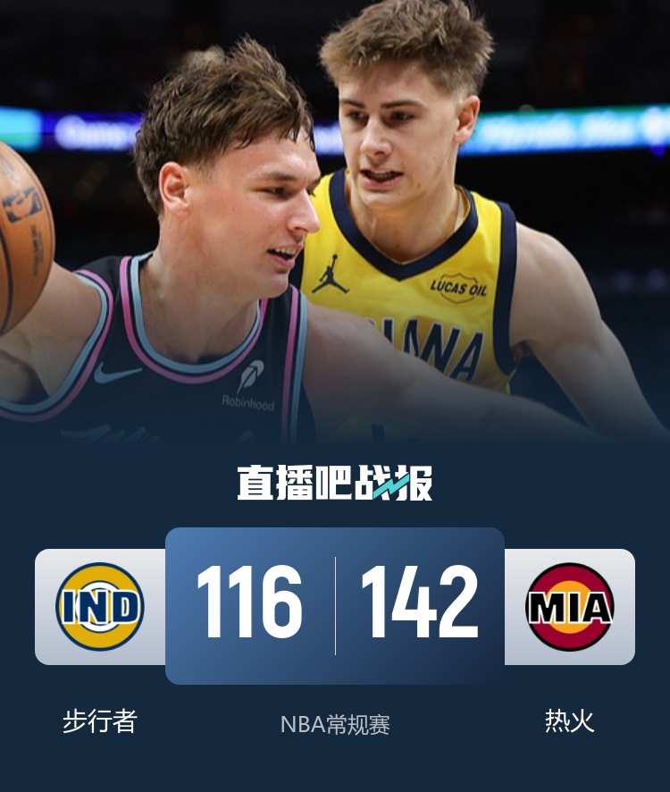 12月28日讯 NBA常规赛激战正酣,步行者和热火两支东部球队直接对话,热火16胜15负暂列东部第8位,步行者则苦吞7连败,6胜25负全联盟垫底。